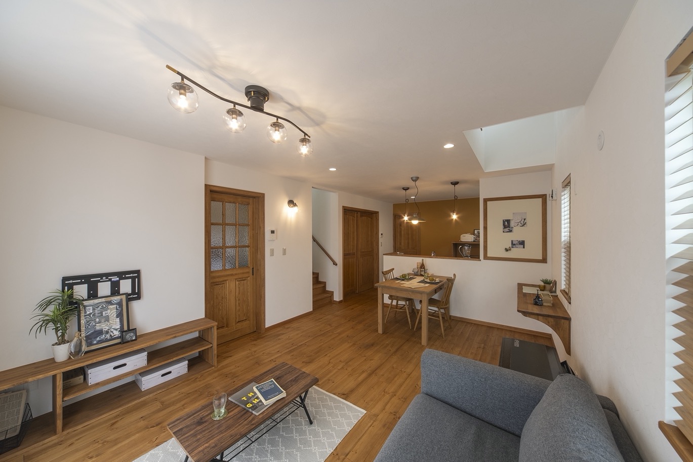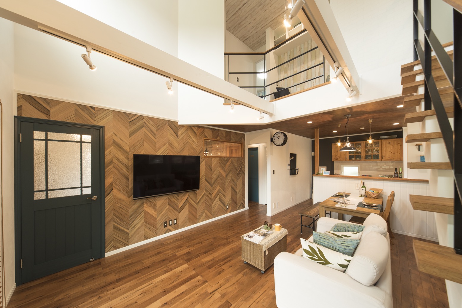 こちらのお家は、TV設置面の裏が階段下収納です。階段下に配線、周辺機器を収納することで生活感を丸ごと隠すことができますね。