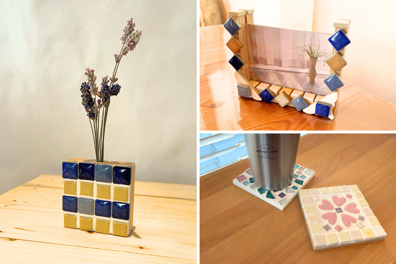 お好きな土台とタイルを選び、世界に一つだけのオリジナルの作品を作っていただきました✨