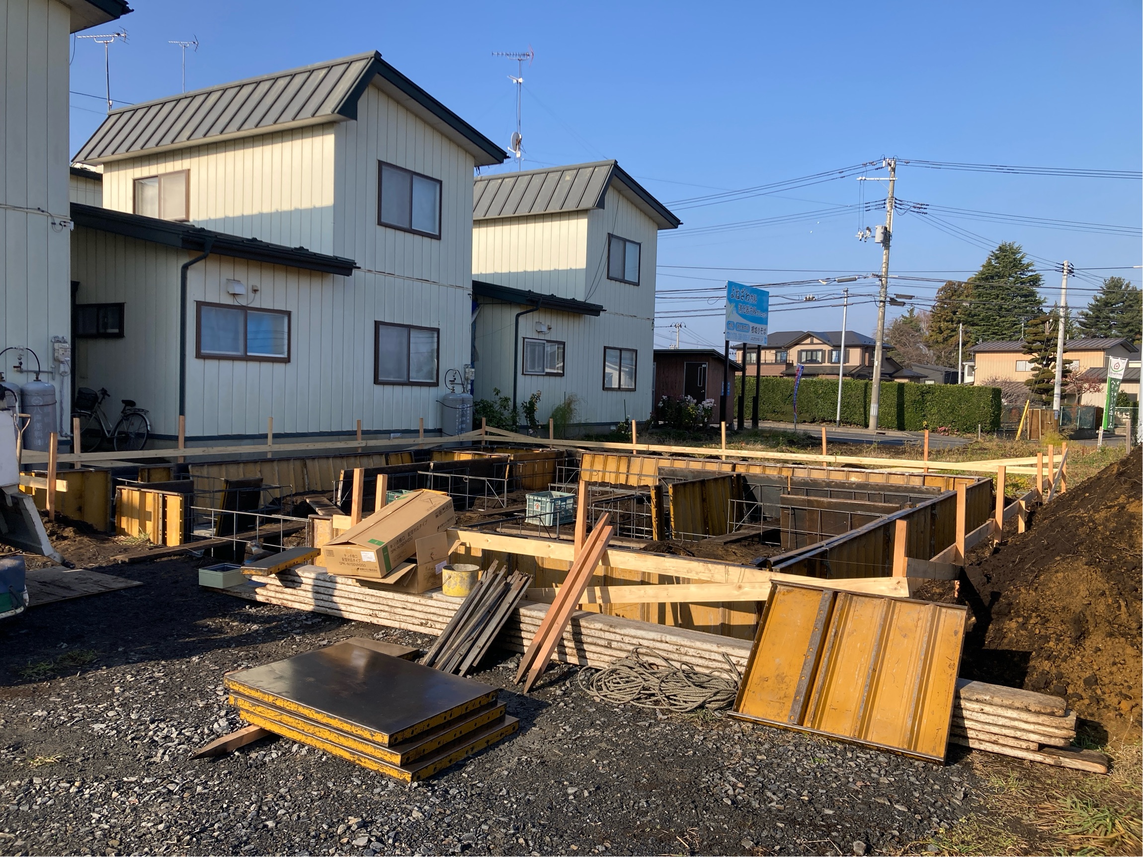 配筋検査が合格しまして、本日は基礎型枠設置が行われております。