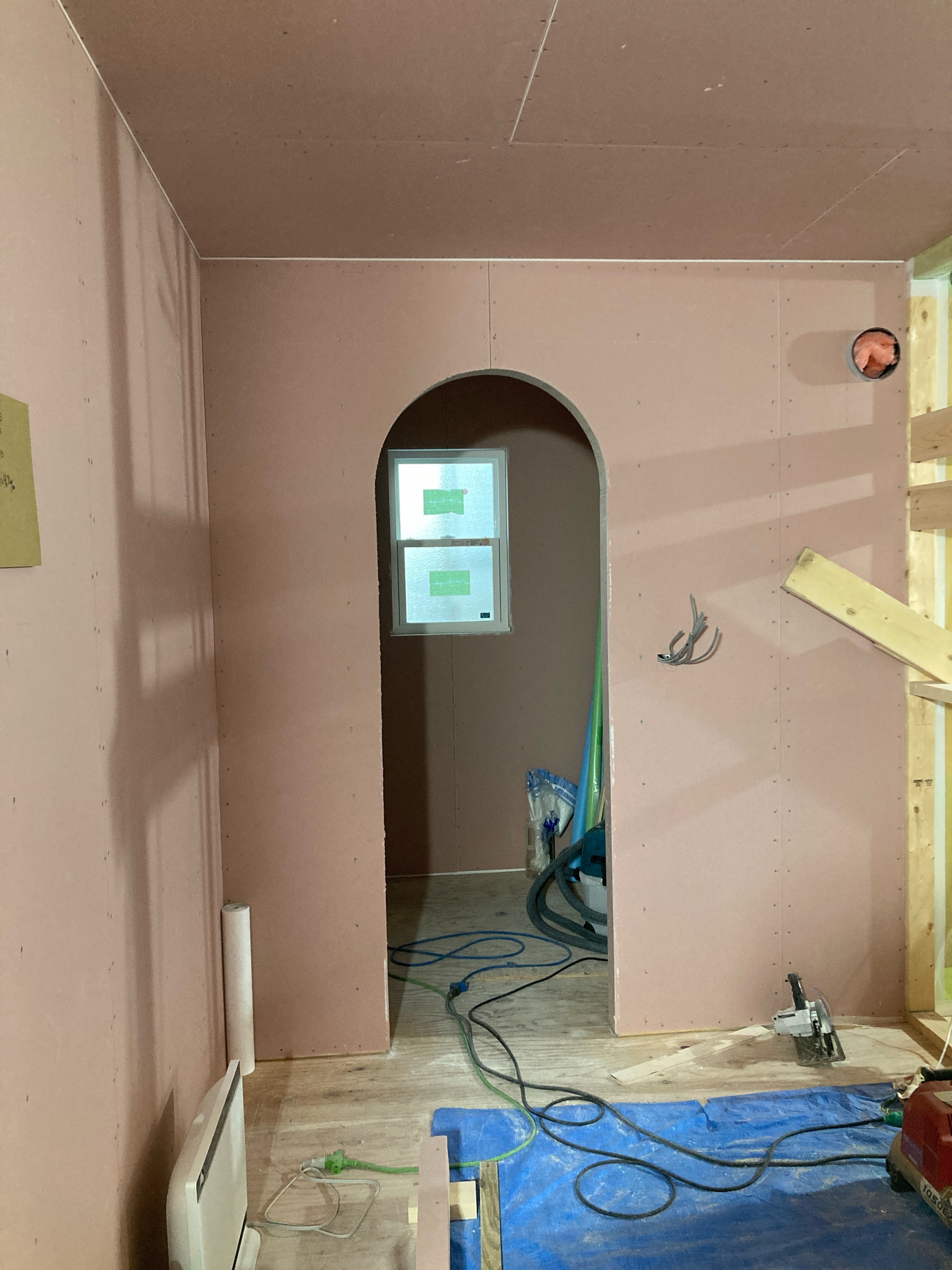 本日は、ユニットバスが設置されました。また、石膏ボード貼りが行われております。