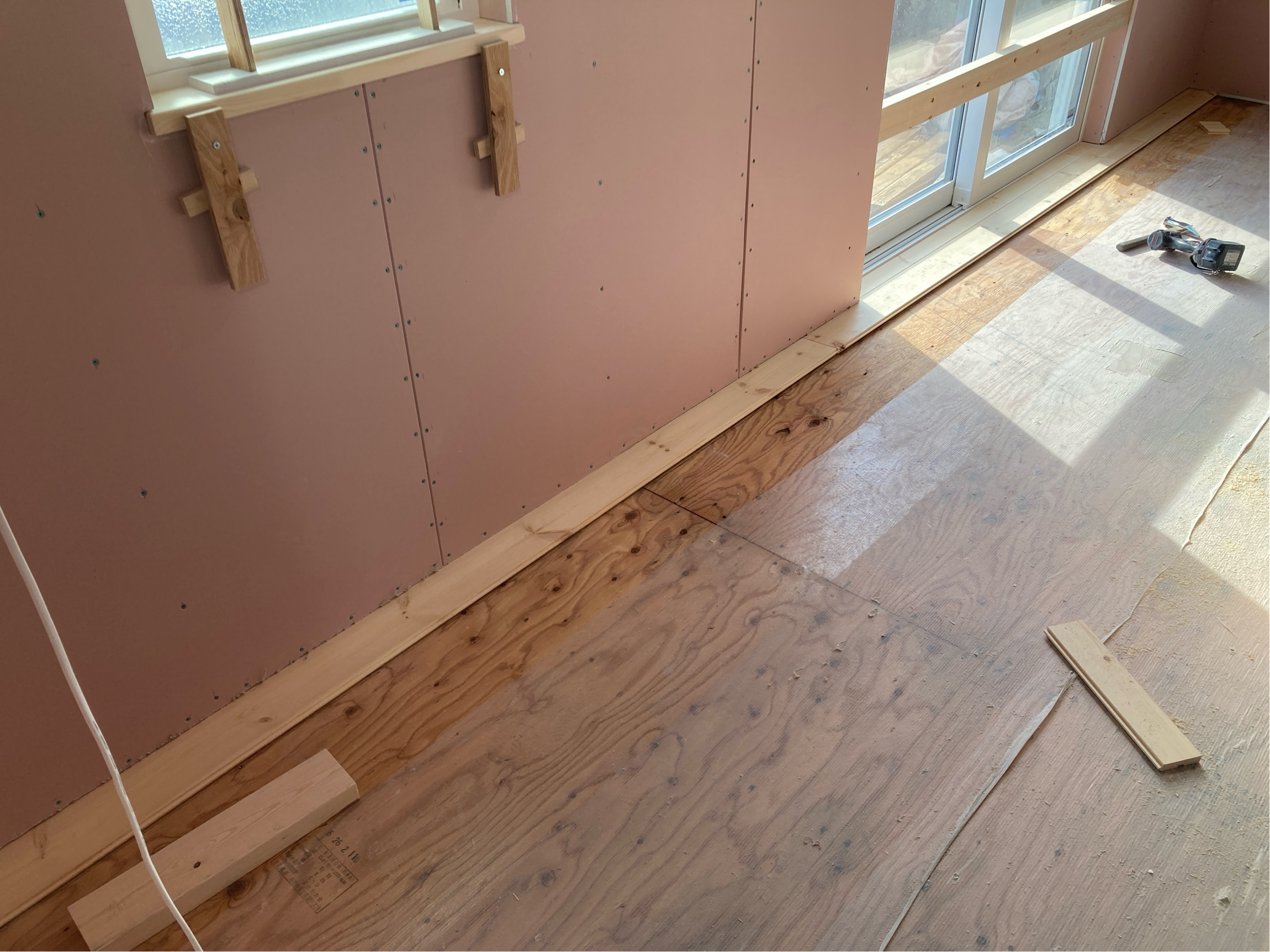 本日は、ボード貼りおよび、フローリング貼りが行われております。
