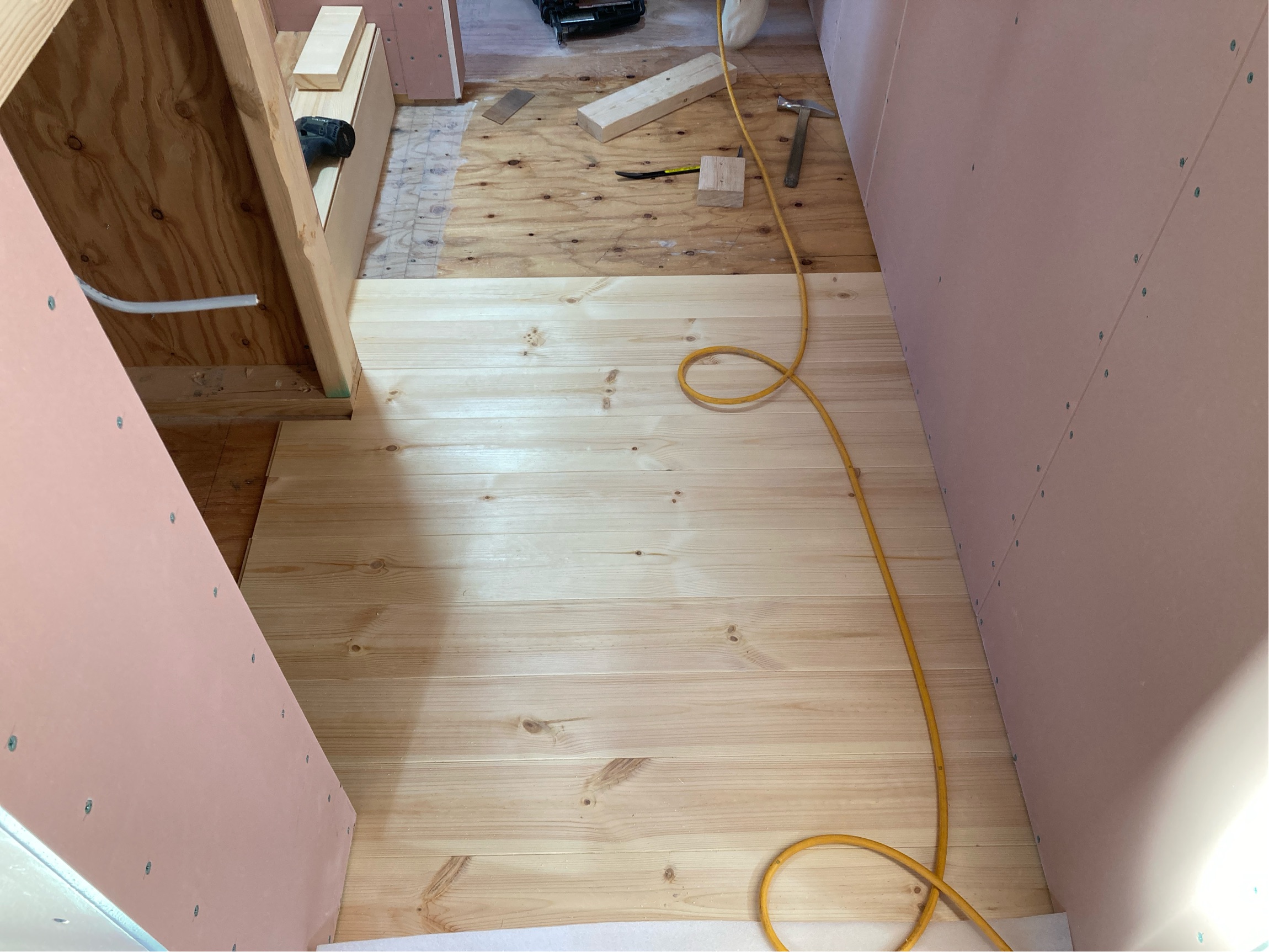 本日は、フローリング貼りが行われております。