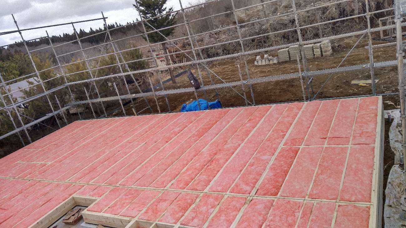 本日は、床組および断熱充填工事が行われております。