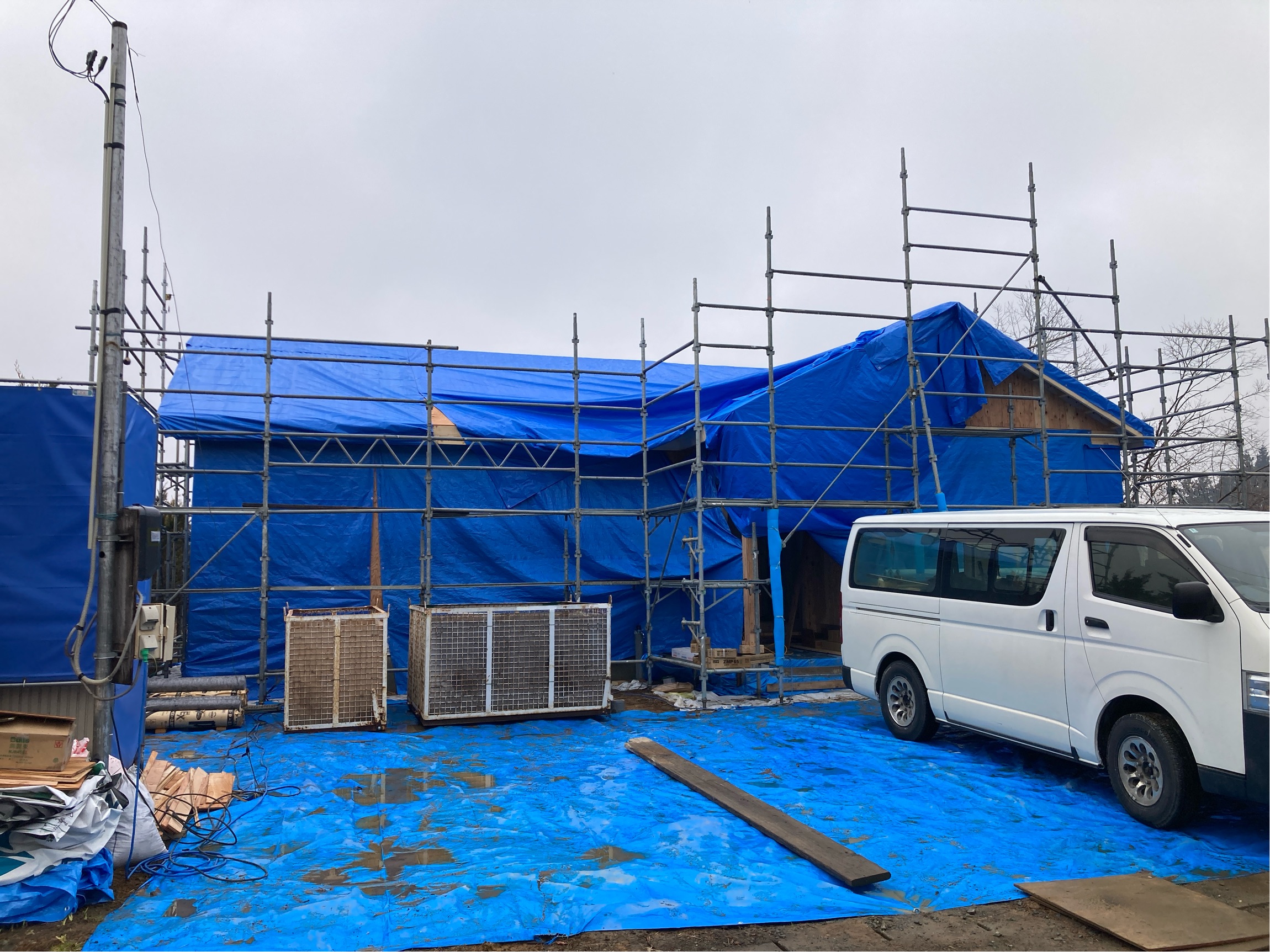 本日は、雨天の為下地施工が行われております。