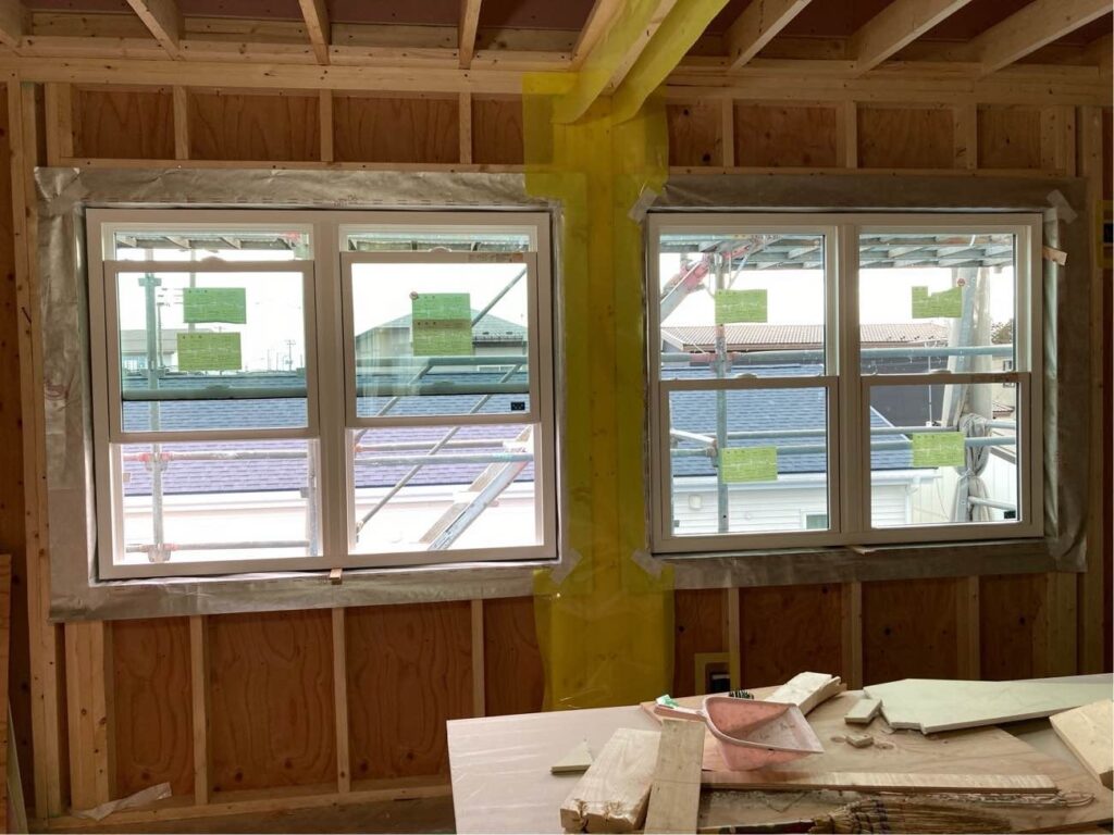 本日はサッシの取り付けが行われていました👍