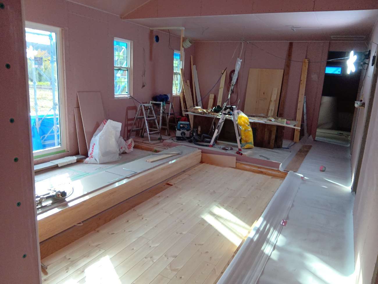 本日は、フローリング貼りが行われております。