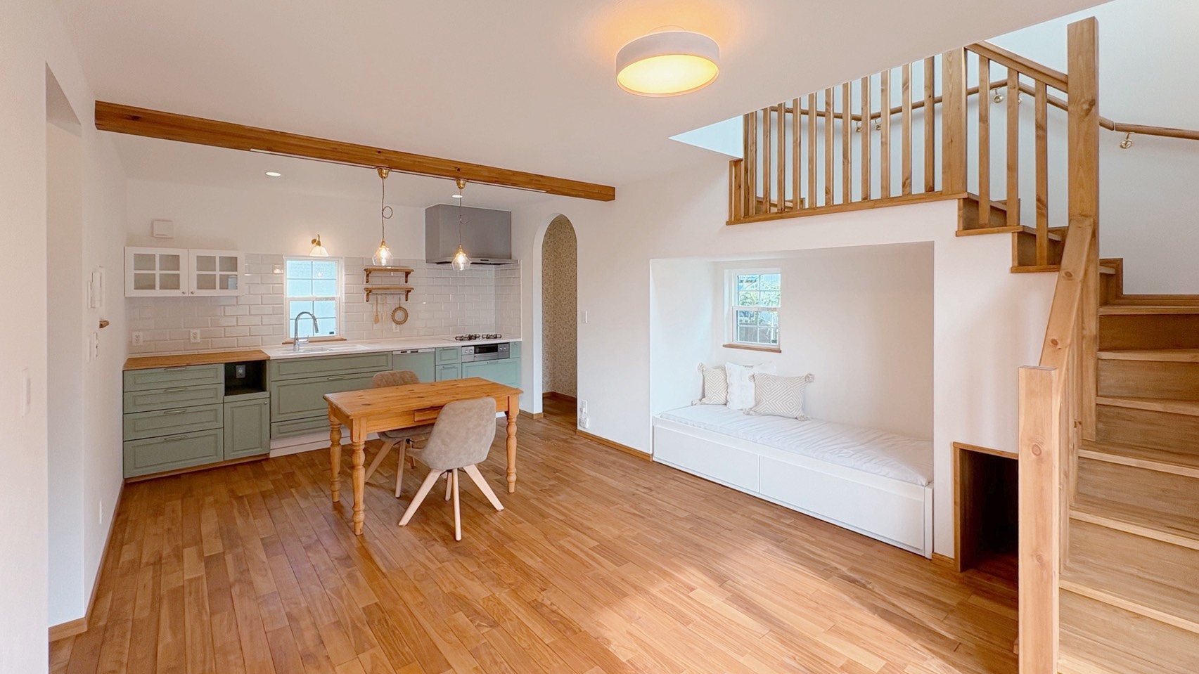 海外スタイルのキッチン、階段下ソファー、造作カウンターなど、アイデア満載の空間活用が見どころです!ぜひ実際に会場でご体感ください🌟