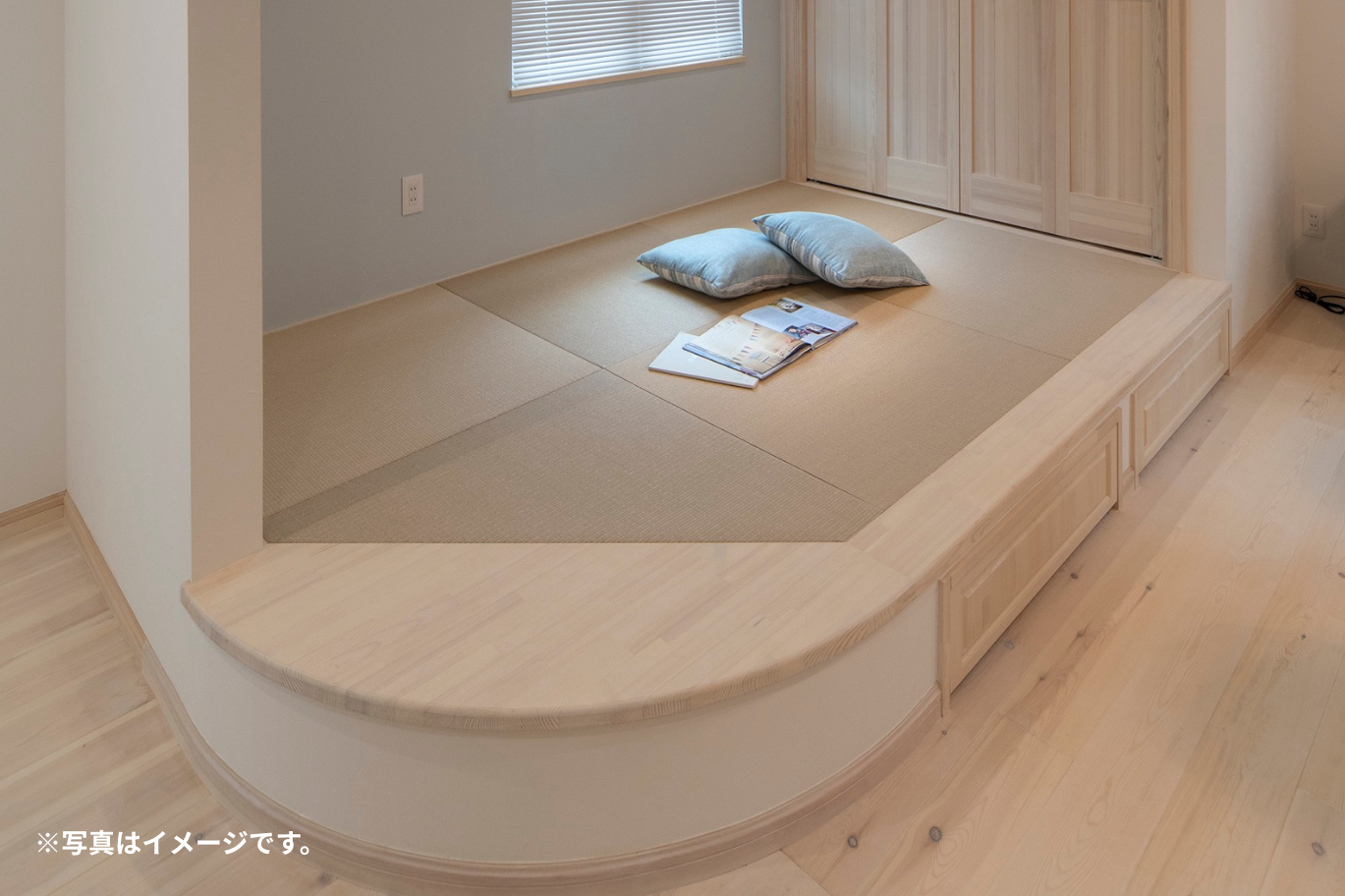お昼寝、遊び場、家事の合間の休憩など、使い方は自由自在。段差に腰掛けるだけでも心地よく、家族の“第二の居場所”として活躍します。