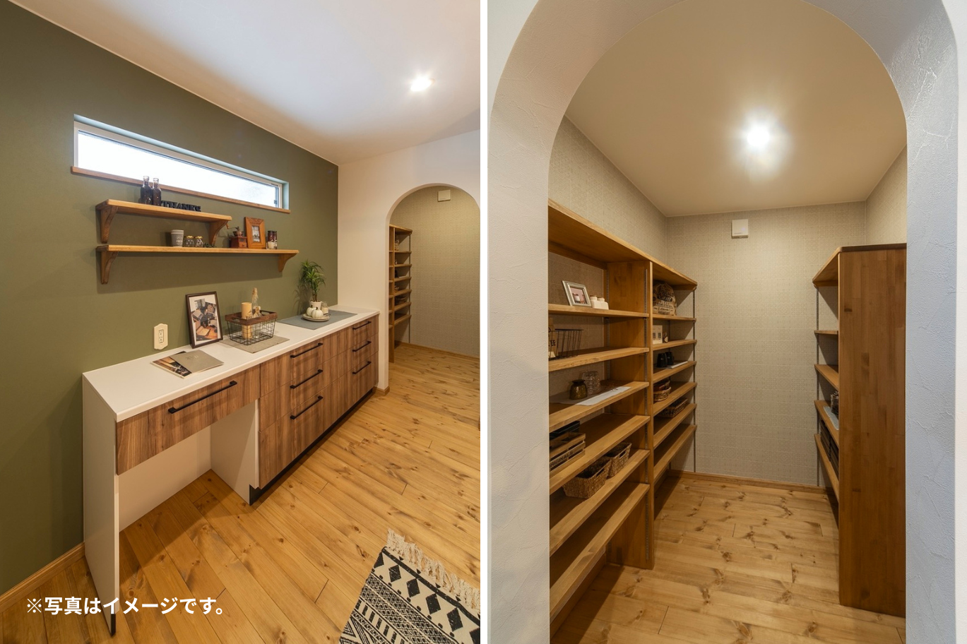 買い物帰りにすぐ荷物を置ける玄関横のパントリーは、