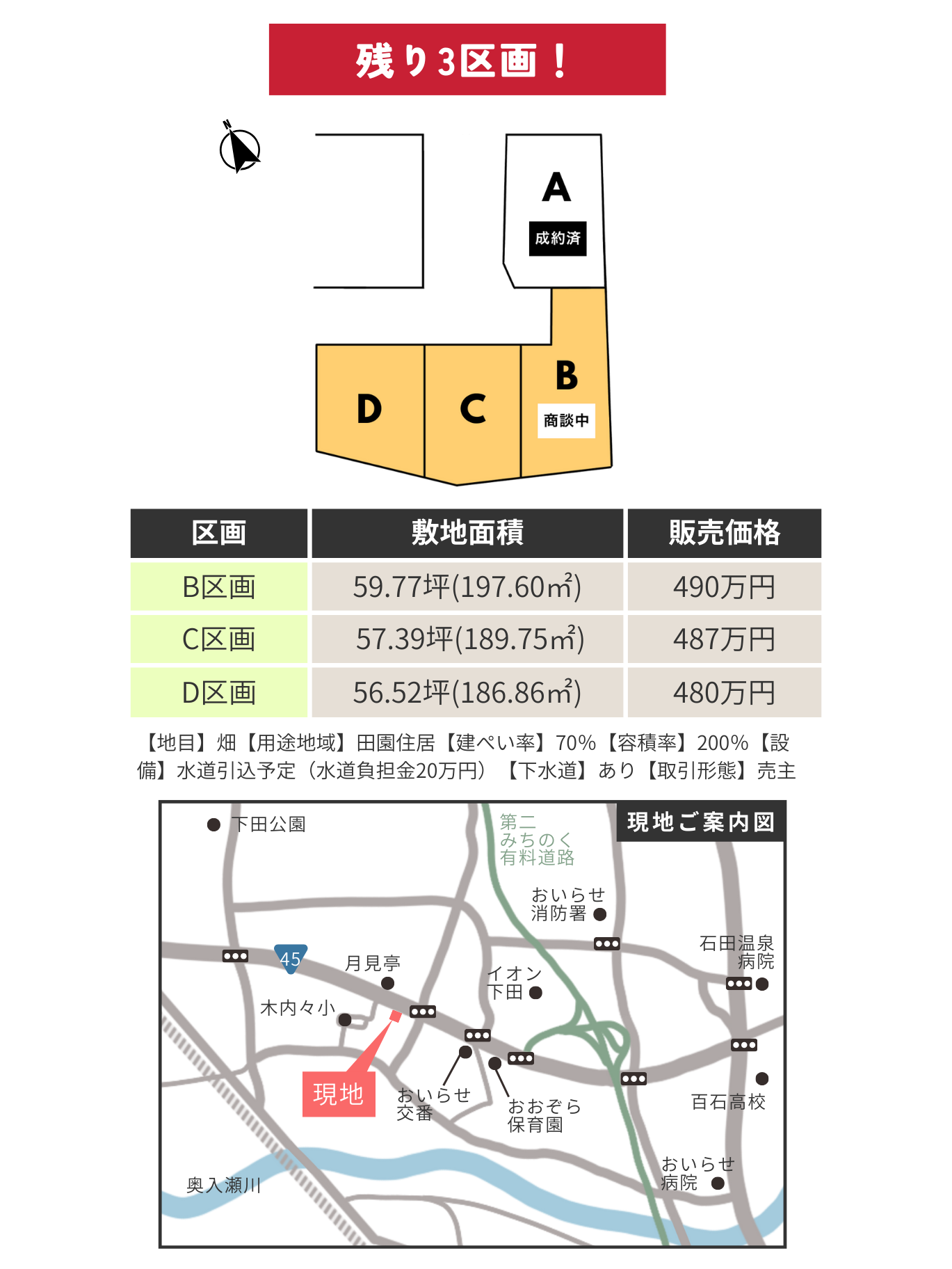 45号線沿いで八戸・三沢・十和田へ通いやすい立地です。
